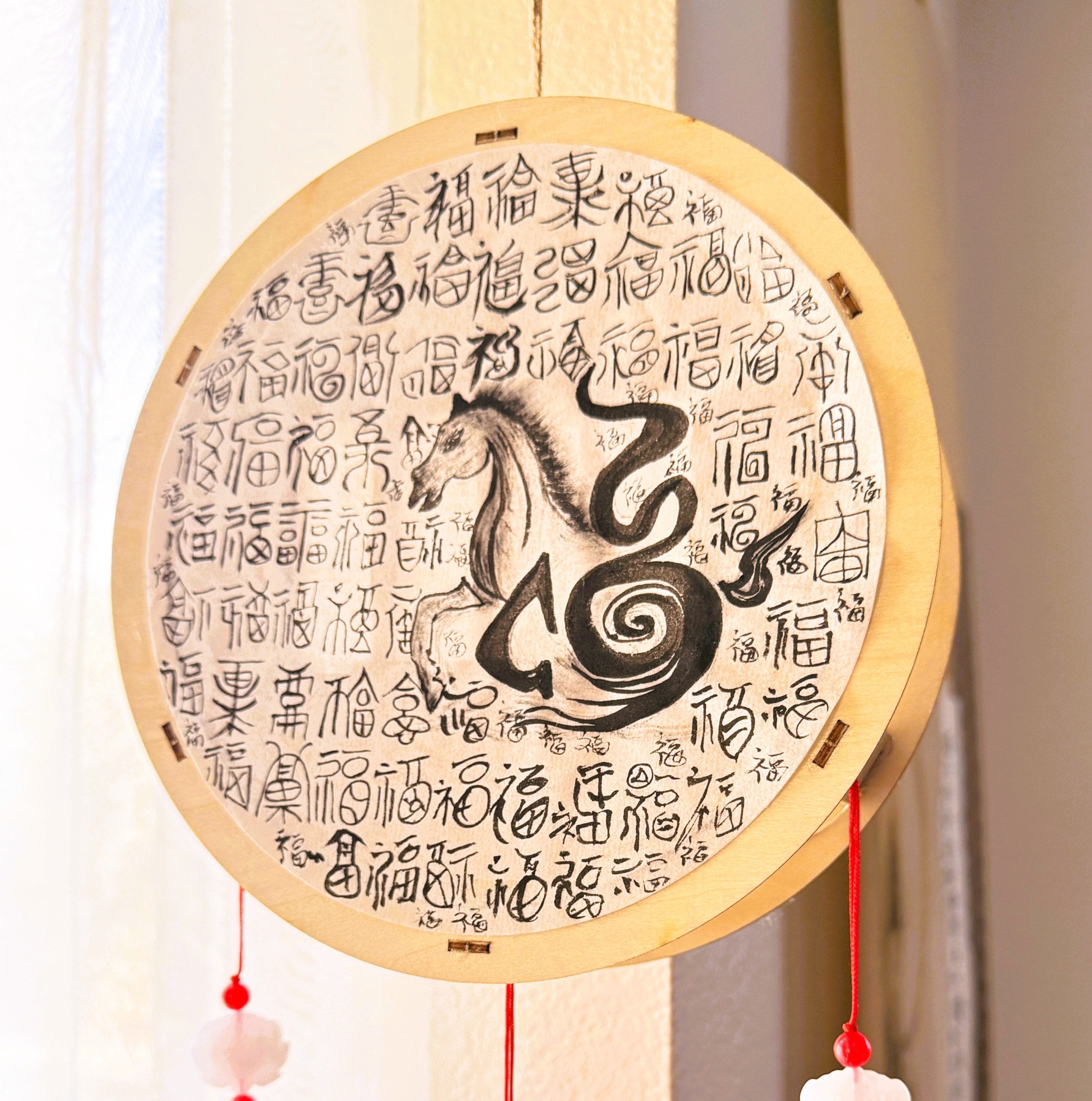** This lantern featuring a painting of the “100 Blessings” was created to support one of the Chinese schools in San Diego, CA.