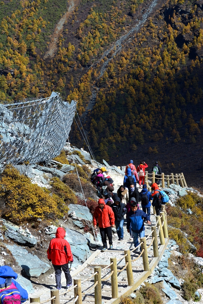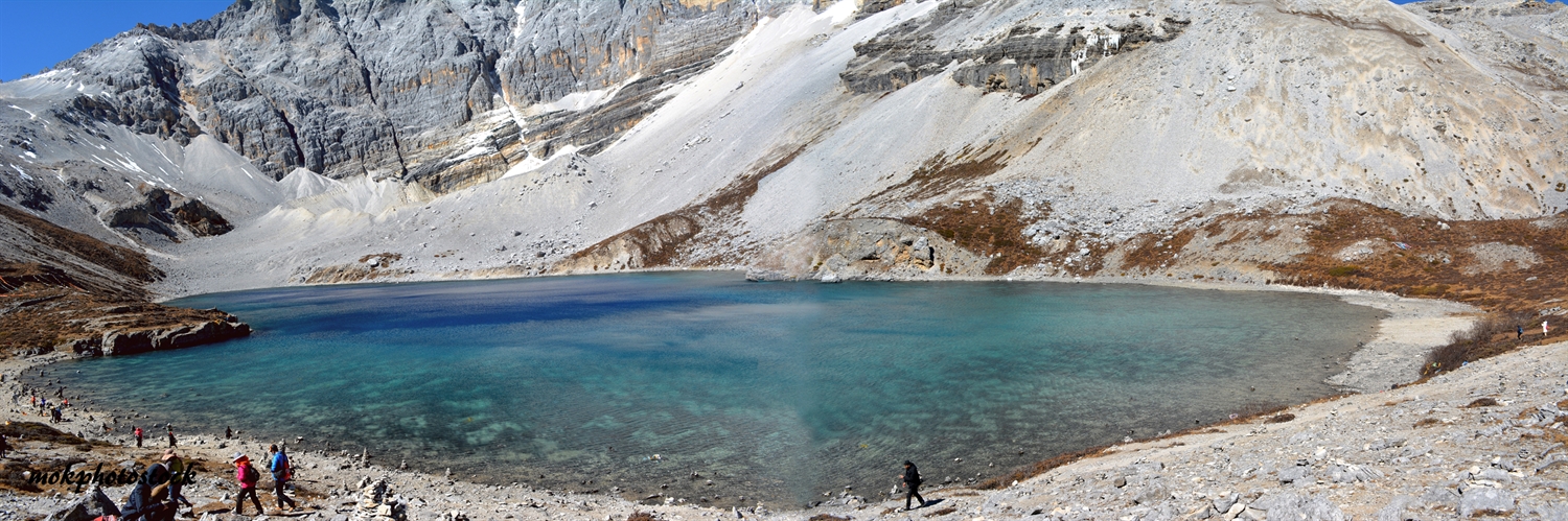 Daocheng Yading is on the highland; the lowest altitude is approx. ~3300 meters. While hiking up to Milk Sea and Five-Color Sea, the altitude is as high as 5100 meters (15300 ft). The hiking trip is 10 kilometers (6.2 miles) round trip. The first 5 kilometers can be ride on a horse or carry by a carrier. However, the last 5 kilometers only hike by foot. Because the place on a highland, some people carry a few bottles of portable oxygen with them.